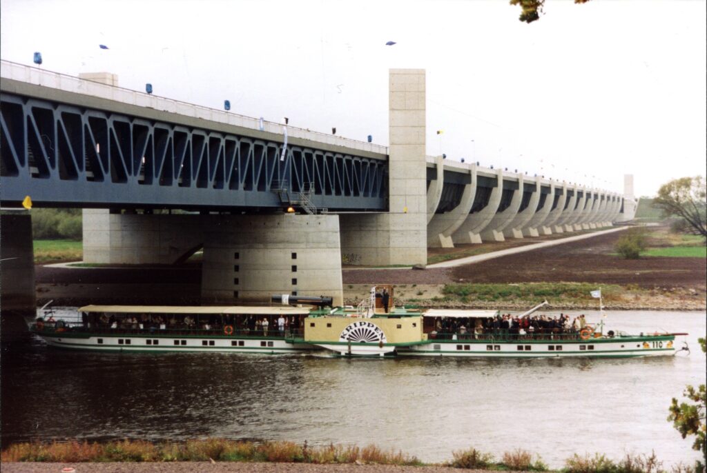 Tja, wo war das Schiff um der Einweihung eines ganz besonderen Bauwerkes beizuwohnen? Ein Tipp sei aber noch gestattet: Die heute dort für Besucher angebotene Rundfahrt nennt sich „Die große 8″…
