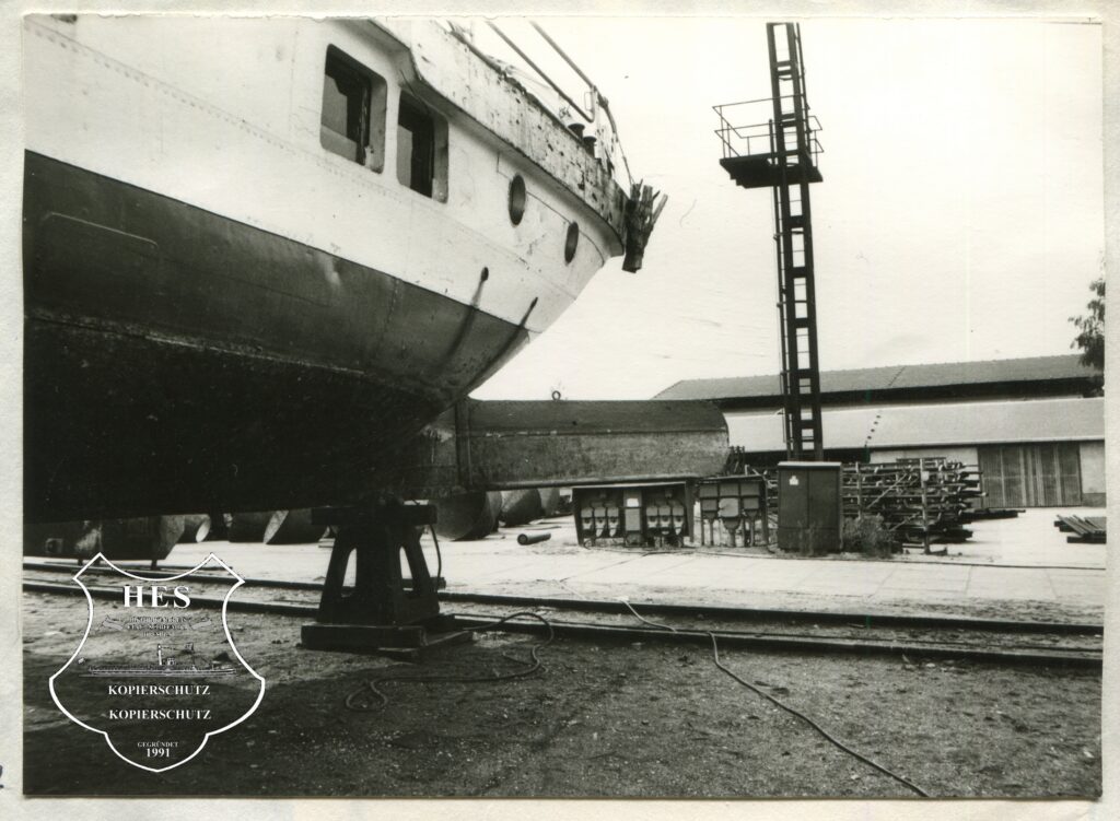 Am 24.11.1992 erfolgte der Werftanlauf in Laubegast, dort wurden Schornstein, Steuerhaus und weitere Aufbauten entfernt und das Schiff anschließend im Schlepp des DS SACHSENWALD zur Werft Genthin verbracht (Aufenthalt dort 03.12.92-14.06.1993). Nach Rückkehr zur Werft Laubegast erfolgten dort der Endausbau und die Malerarbeiten.