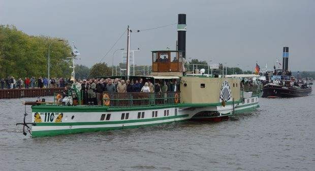 „Wussten Sie eigentlich…“ das der am weitesten gereiste Raddampfer der Dresdner Flotte der PD KRIPPEN ist? Zwar gibt es ältere, stärkere und größere Schiffe in Dresden, aber keines ist so weit auf Deutschlands Wasserstraßen unterwegs gewesen. Dies verdankt er seiner im wahrsten Sinne des Wortes „bewegten Vergangenheit“. 1979 außer Dienst gestellt wurde das Schiff 1983 nach Kloschwitz an die Saale verkauft. Zwar wird die KRIPPEN dort an Land aufgestellt, eine geplante Nutzung als Kulturzentrum und Gaststätte kommt aber nicht in Gang. 1991, nach der Wende, wird unser Dampfer an einen Hamburger Kaufmann verkauft, welcher es, wiederum auf dem Wasserwege, nach Dresden-Laubegast zurück bringt. Da die Finanzierung des Wiederaufbaus allerdings nicht gesichert ist, kauft der Besitzer eines Meissner Schiffsrestaurants die KRIPPEN mit dem Ziel der Rekonstruktion und Wiederinbetriebnahme. Mittlerweile ist allerdings die Laubegaster Werft mit der Rekonstruktion von 7 Dresdner Dampfschiffen ausgelastet, so dass man sich entschließt, die KRIPPENauf der Brandt-Werft in Oldenburg sanieren zu lassen. Also geht es im Schlepp zur Hitzler-Werft nach Lauenburg und von dort, drei geteilt und auf Seeleichter gestellt, nach Oldenburg.